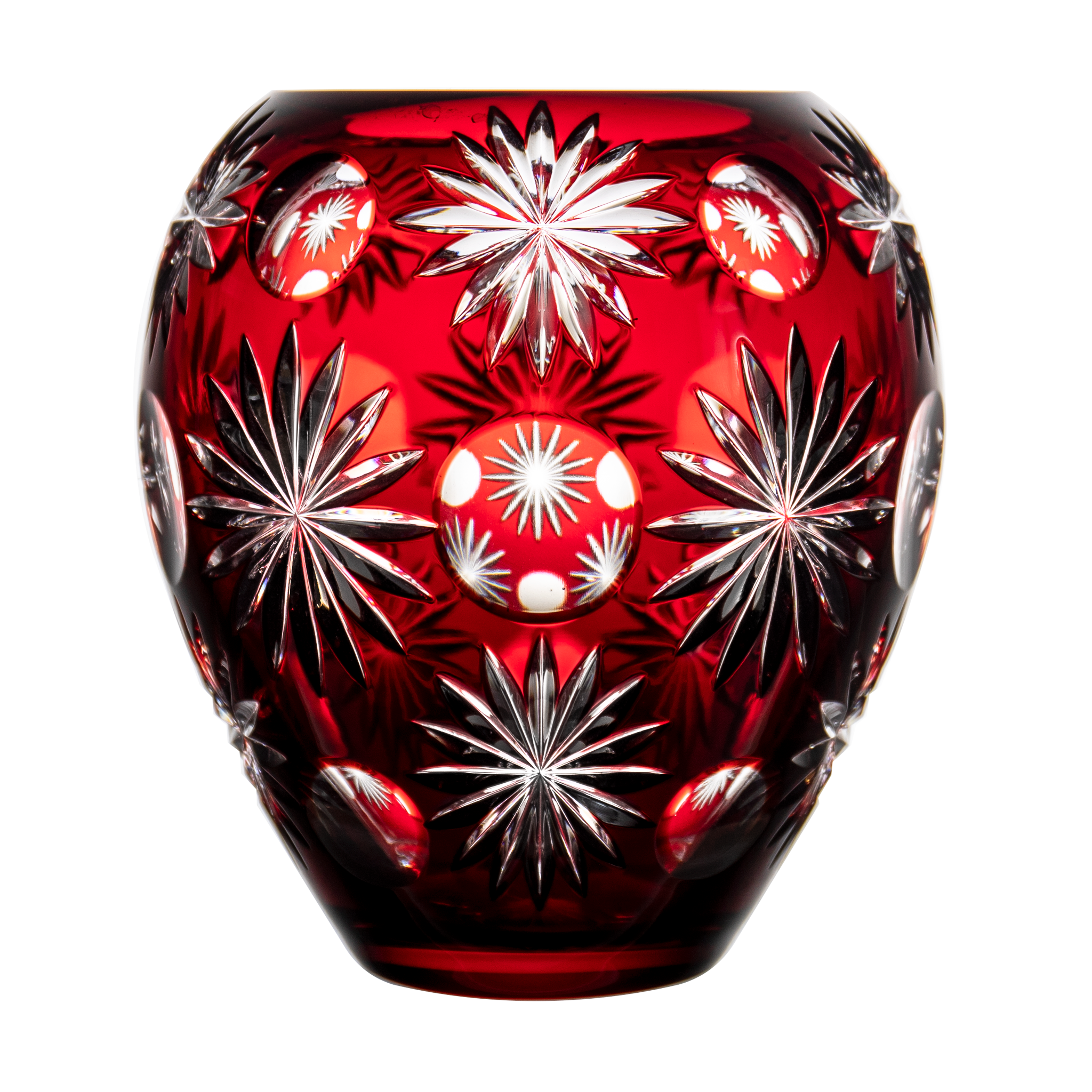 Snowflake Dreams Ruby Red Vase 6.9 in