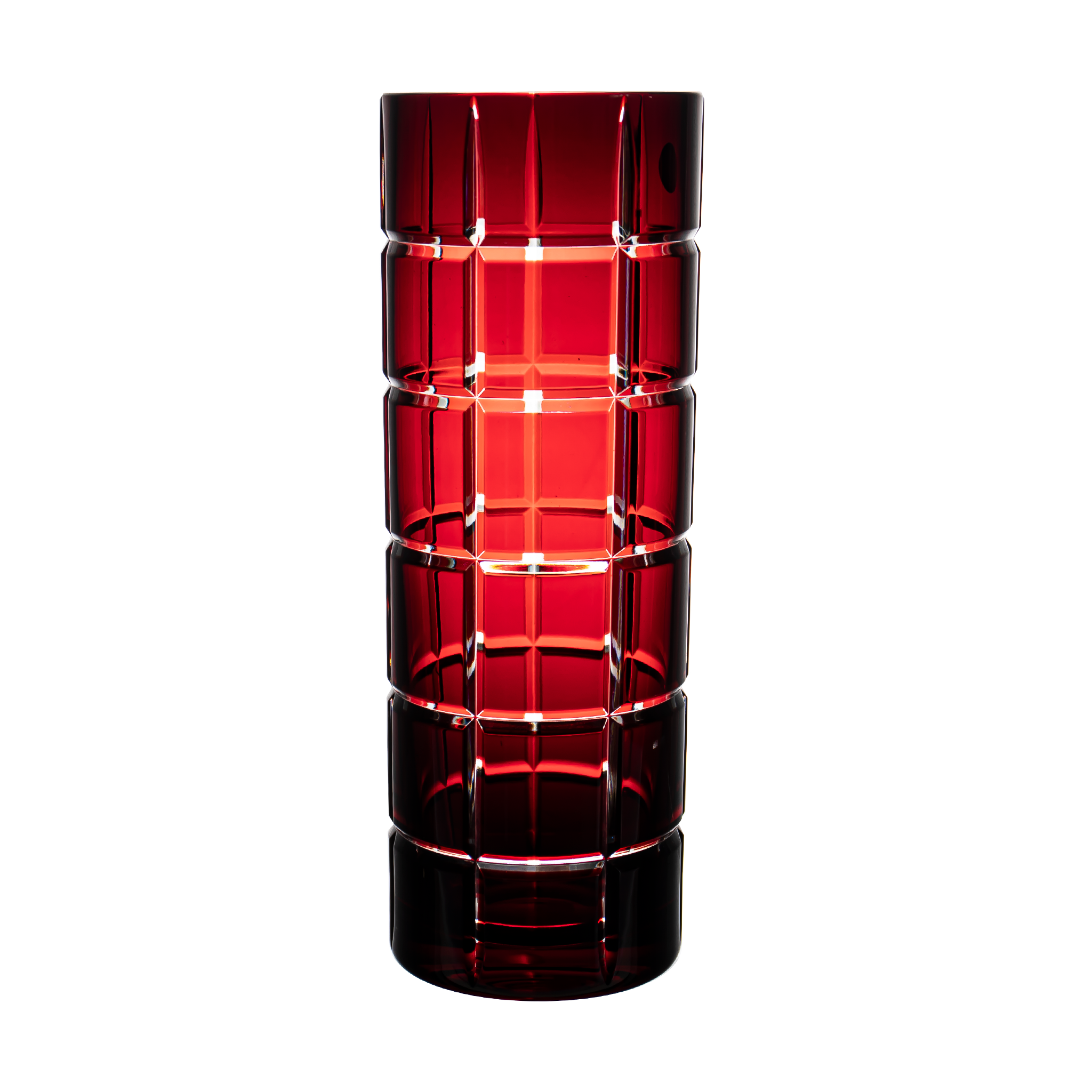 Birks Crystal Cube Ruby Red Vase 11.8 in