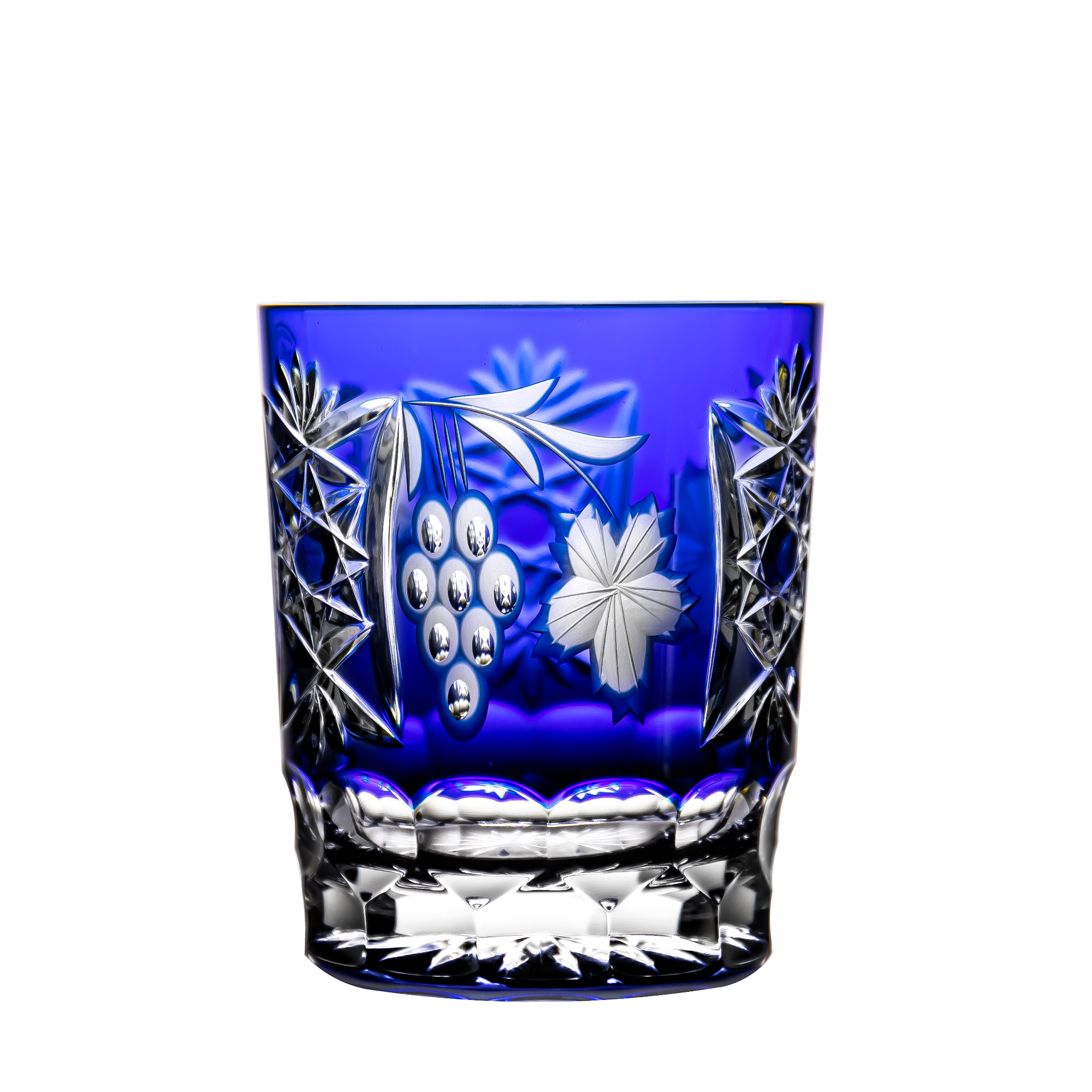 Genuine cased coloured lead crystal glasses with a grape design. It is a hand-polished, mouth-blown unique product. The justly famous Ajka Crystal Marsala named collection is also available in a beautiful blue colour. With its prodigious, detailed, elegant pattern, it will be an outstanding decoration for any table.