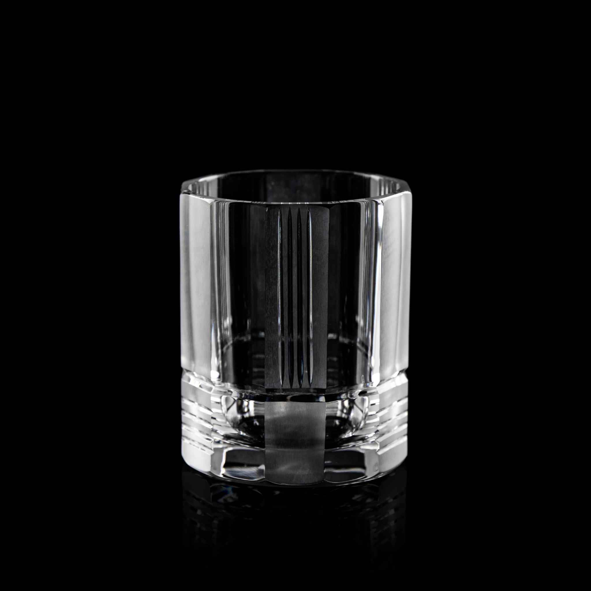 Rare Ralph Lauren Old Fashioned glass featuring frosted and clear side panels with refined vertical cuts—an elegant, timeless collectible.