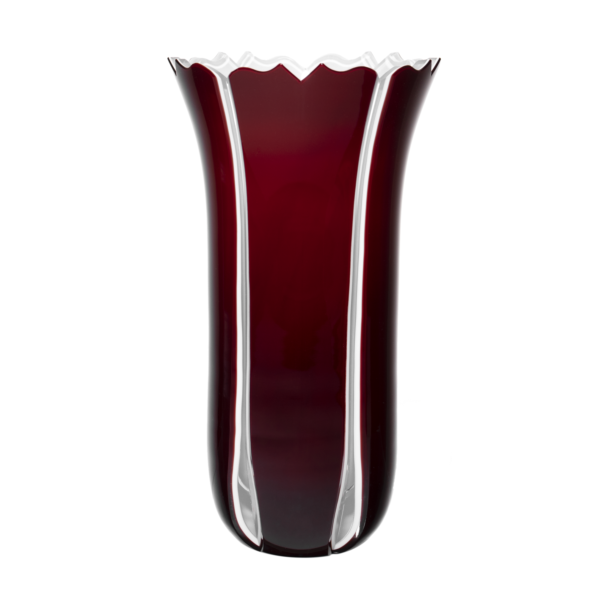 Tulipe Double Cased Ruby Red & White Vase 9.8 in