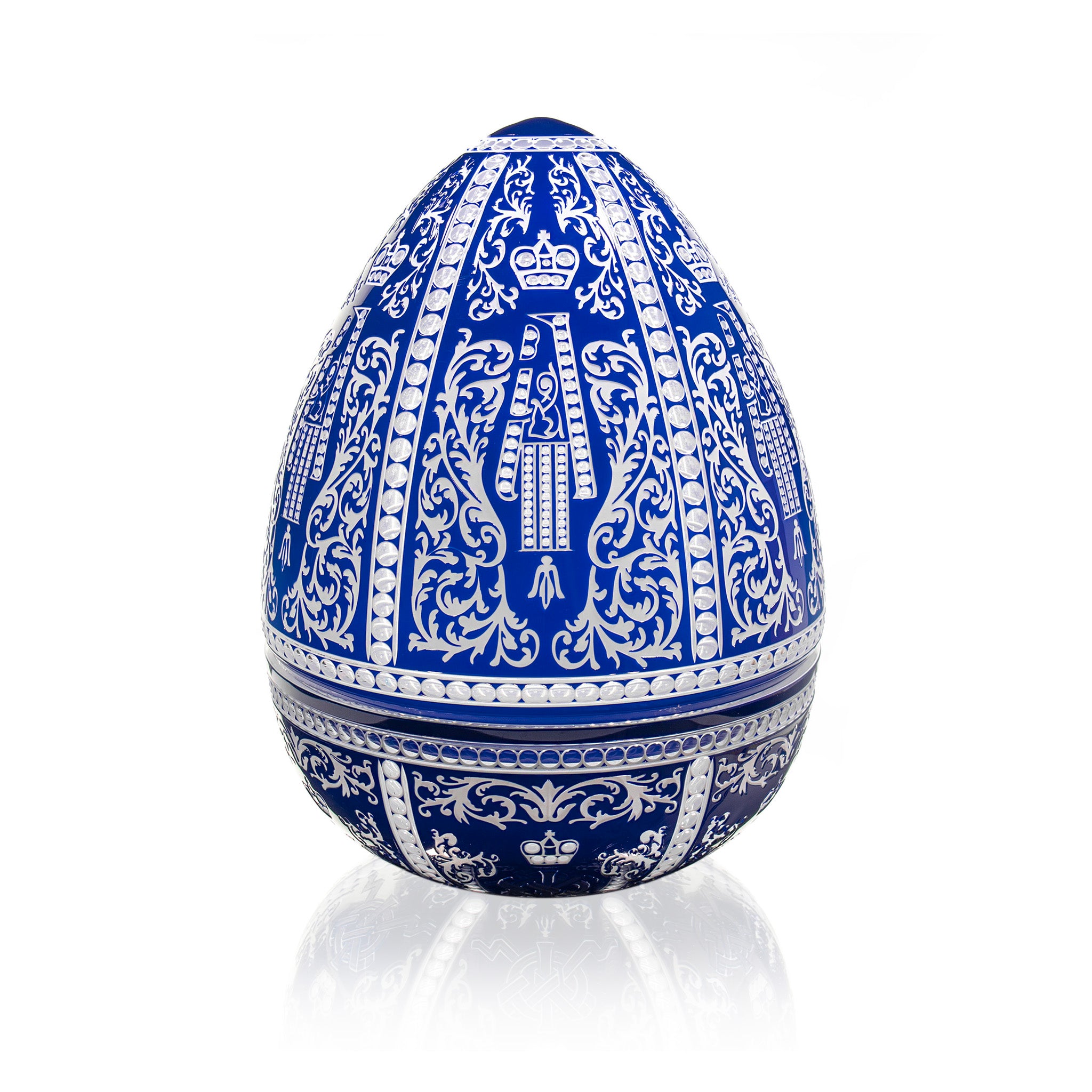 Fabergé Cameo Egg Box with intricate Baroque design and delicate hand-carved patterns. This crystal masterpiece showcases exceptional craftsmanship, adding regal elegance to any collection or serving as a luxurious, decorative gift.